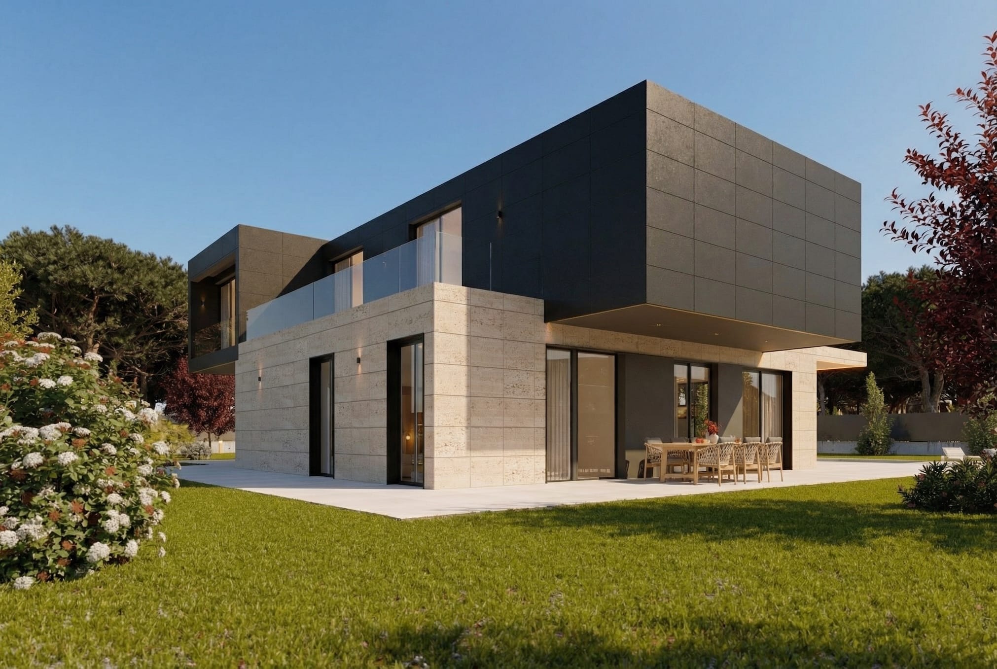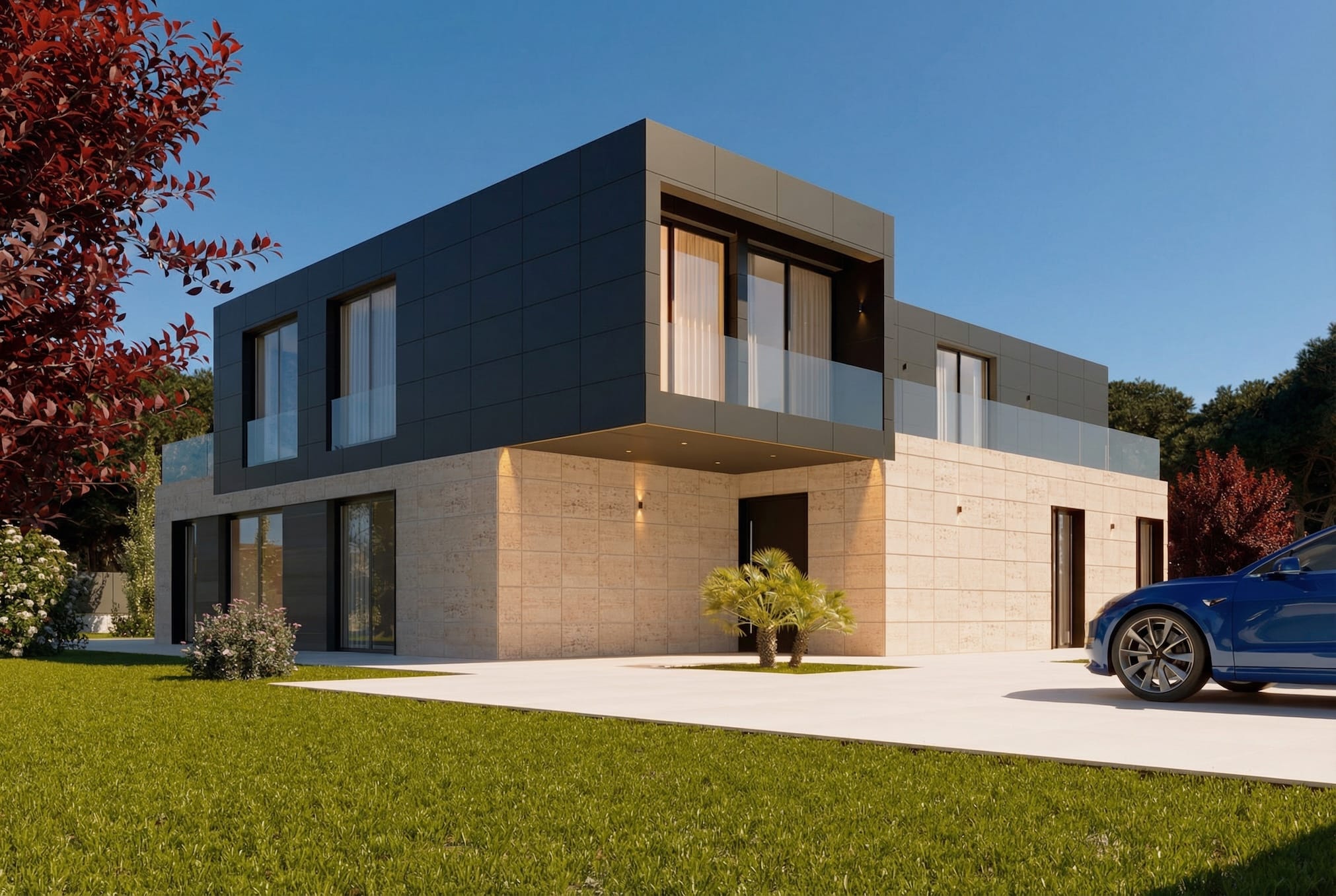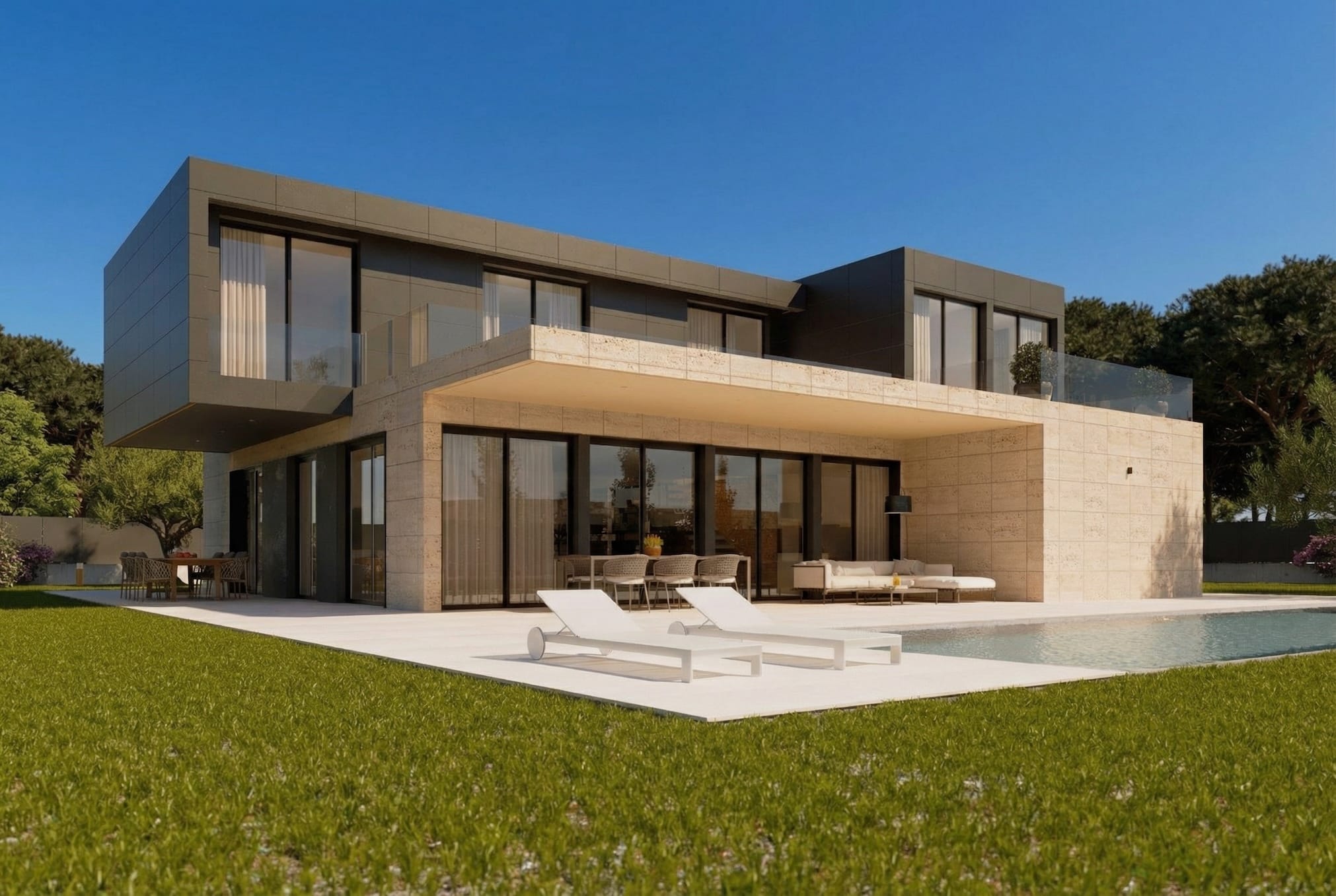 ASTRA és un habitatge de línies definides i estètica actual que expressa modernitat des de cada angle. El volum s'eleva en dues plantes equilibrades, on el disseny geomètric es combina amb una acurada selecció d'acabats que en realcen el caràcter contemporani. La façana ventilada en dues tonalitats aporta ritme visual i profunditat al conjunt, jugant amb contrastos sobris que reforcen la identitat arquitectònica de la casa. A la planta baixa, els espais comuns s'articulen al voltant d'un nucli obert i lluminós que connecta de manera fluida amb l'exterior. Una terrassa integrada i una piscina emmarquen l´experiència de vida al´aire lliure. La planta superior acull les estances privades, amb una distribució racional que prioritza el confort i la privadesa. Els grans finestrals, acuradament orientats, permeten que la llum natural sigui protagonista a tots els espais sense renunciar a l'eficiència tèrmica. ASTRA és una proposta elegant i funcional, dissenyada per a aquells que valoren l'arquitectura moderna, el joc de volums i una atmosfera urbana reinterpretada amb sobrietat i estil.
