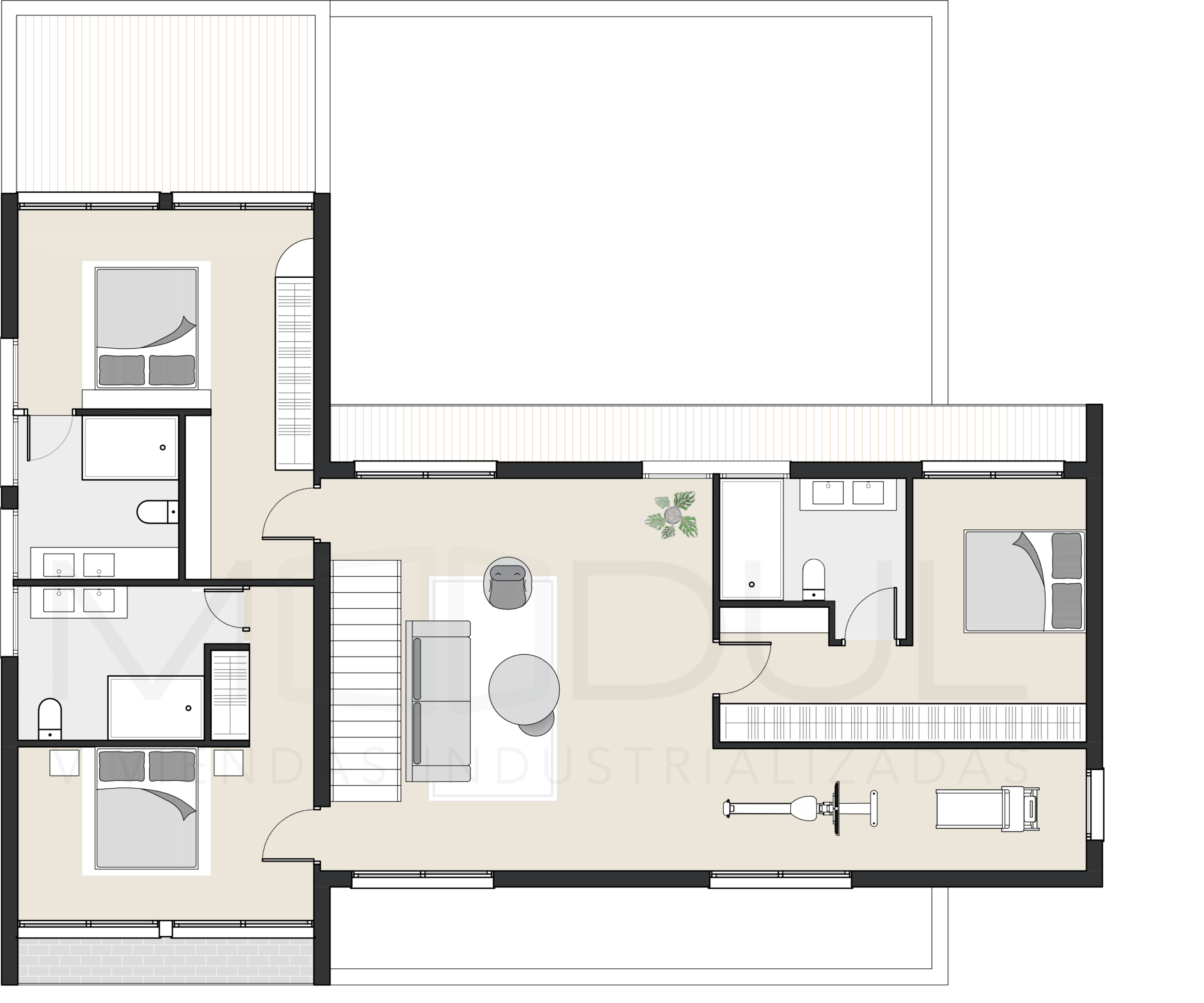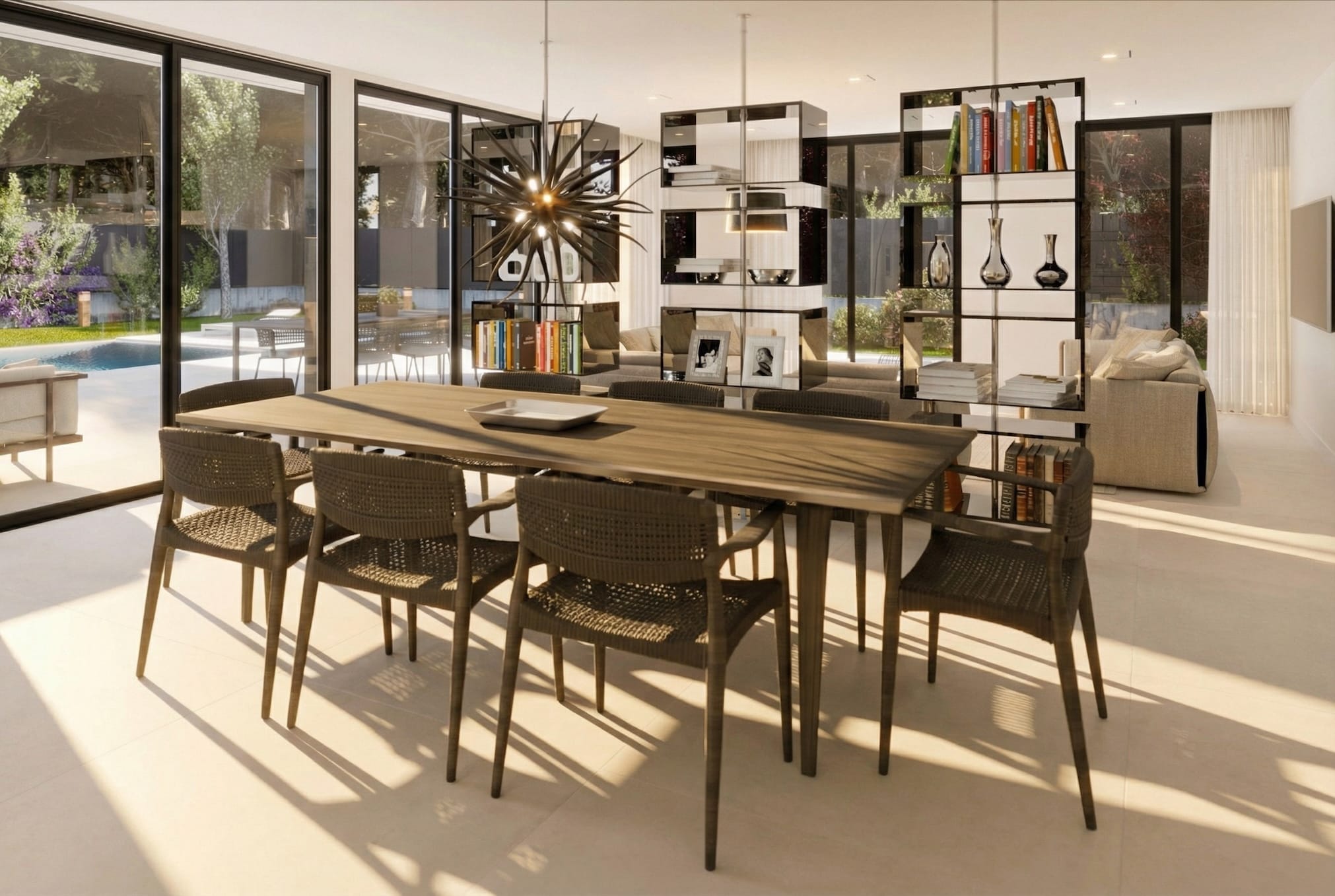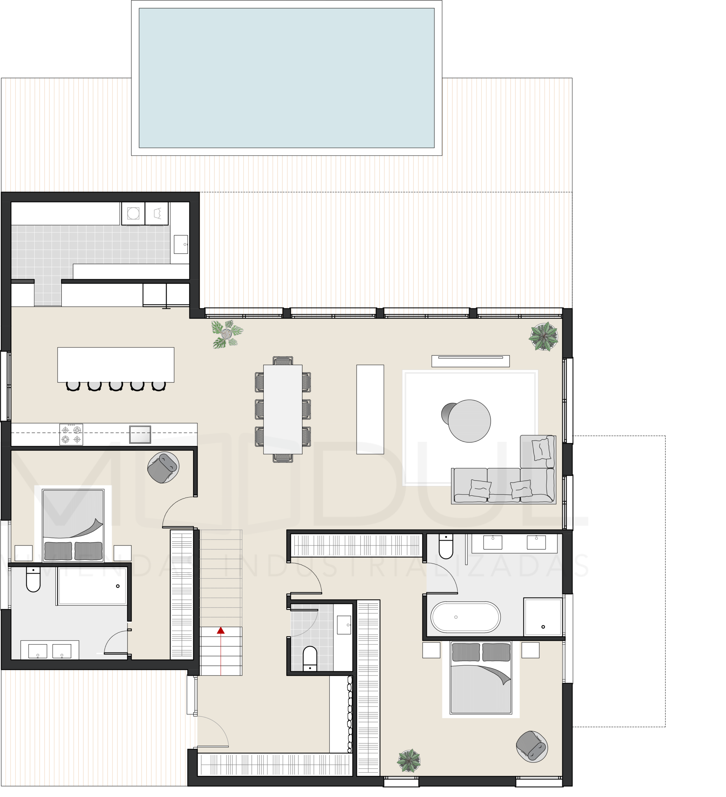 ASTRA és un habitatge de línies definides i estètica actual que expressa modernitat des de cada angle. El volum s'eleva en dues plantes equilibrades, on el disseny geomètric es combina amb una acurada selecció d'acabats que en realcen el caràcter contemporani. La façana ventilada en dues tonalitats aporta ritme visual i profunditat al conjunt, jugant amb contrastos sobris que reforcen la identitat arquitectònica de la casa. A la planta baixa, els espais comuns s'articulen al voltant d'un nucli obert i lluminós que connecta de manera fluida amb l'exterior. Una terrassa integrada i una piscina emmarquen l´experiència de vida al´aire lliure. La planta superior acull les estances privades, amb una distribució racional que prioritza el confort i la privadesa. Els grans finestrals, acuradament orientats, permeten que la llum natural sigui protagonista a tots els espais sense renunciar a l'eficiència tèrmica. ASTRA és una proposta elegant i funcional, dissenyada per a aquells que valoren l'arquitectura moderna, el joc de volums i una atmosfera urbana reinterpretada amb sobrietat i estil.