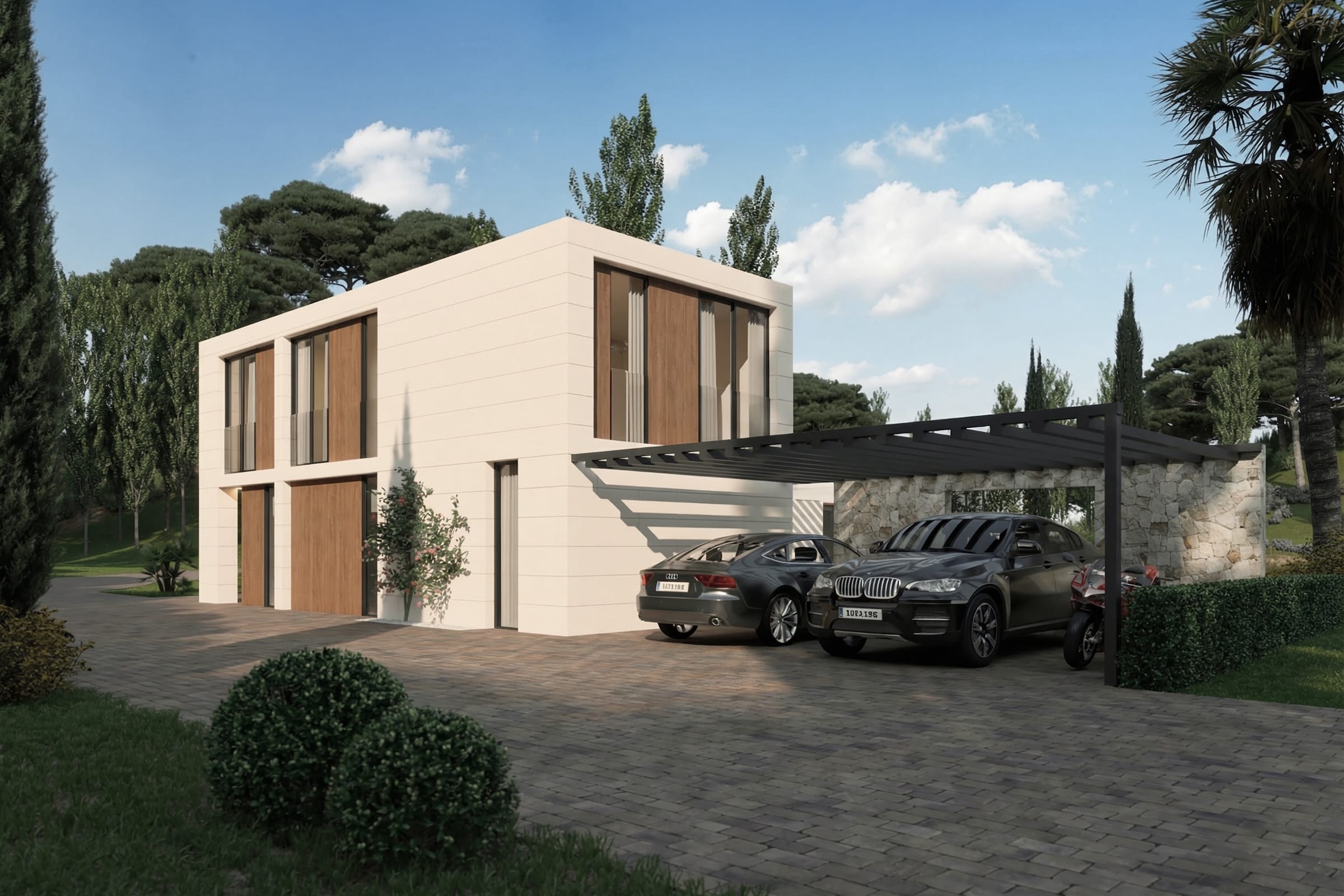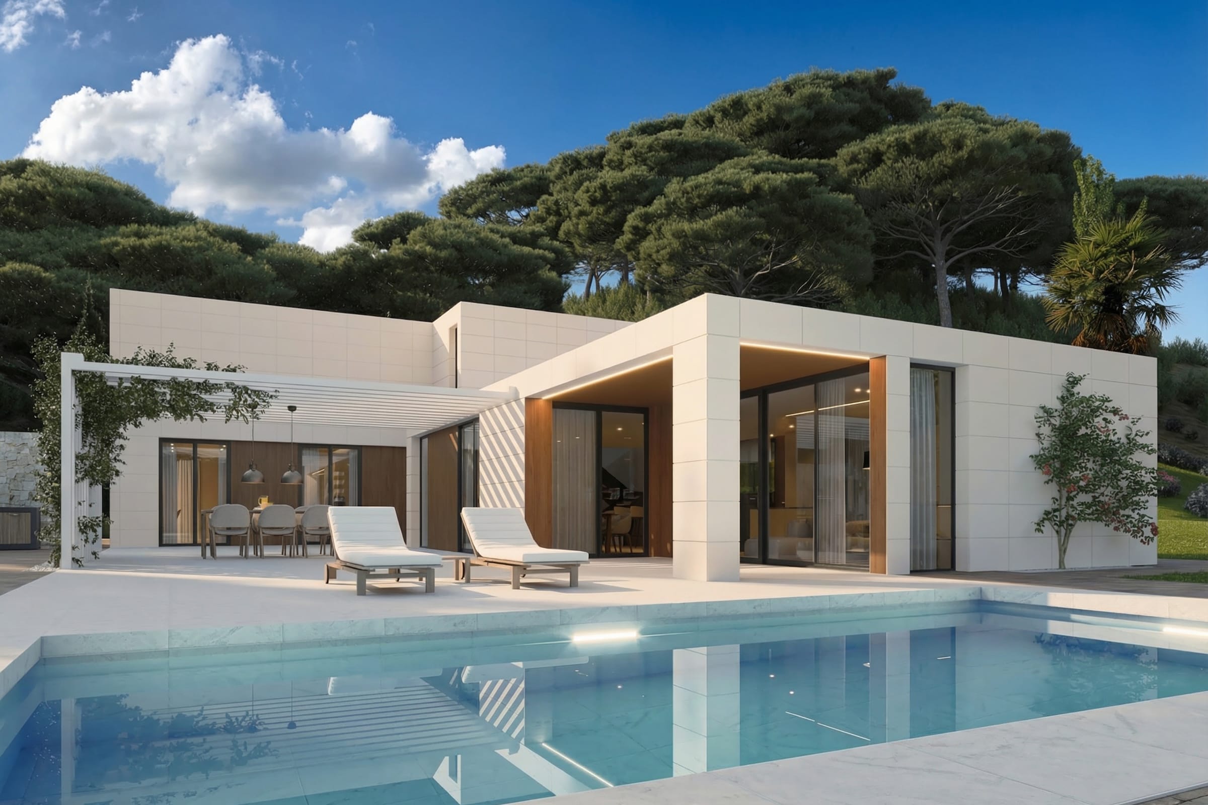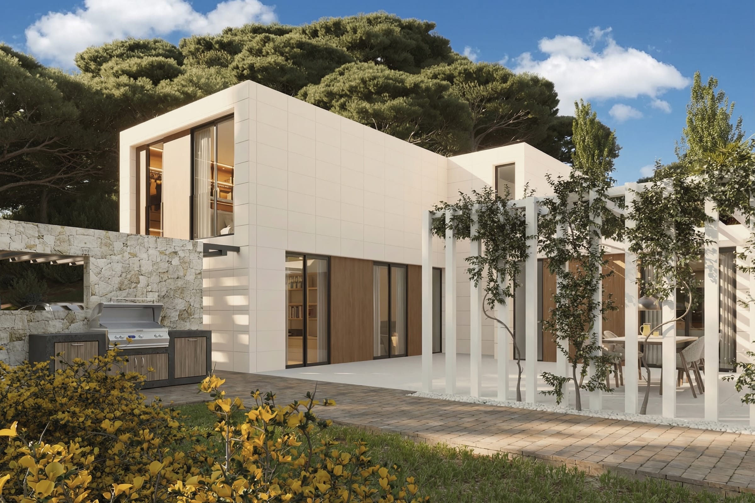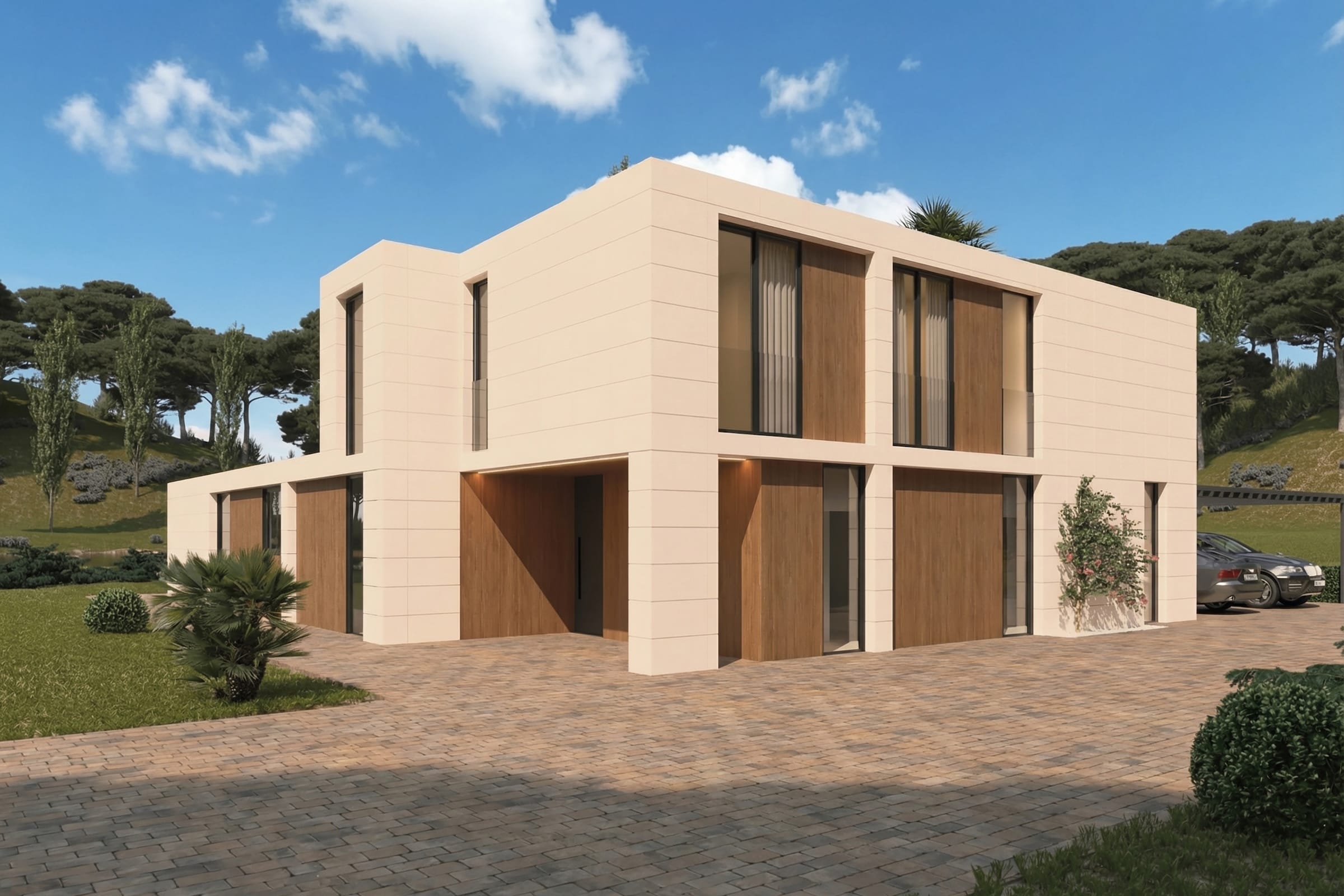 VITA es una casa de dos plantas que reinterpreta la arquitectura mediterránea con una estética cálida y contemporánea. El uso combinado de madera y tonos naturales confiere al conjunto un equilibrio entre tradición y modernidad, resaltando su integración con el entorno. La planta baja acoge la vida diaria con una distribución fluida: cocina, comedor y salón se conectan en un espacio abierto que se prolonga hacia el exterior a través de una terraza y zona ajardinada. Grandes ventanales favorecen la entrada de luz natural y crean una relación directa con el paisaje inmediato. La planta superior ha sido cuidadosamente diseñada para ofrecer las mejores vistas desde las estancias privadas. La orientación estratégica de cada dormitorio permite disfrutar del entorno, maximizando la privacidad y la luz natural. La suite principal se abre a una terraza elevada, convirtiéndose en un refugio íntimo con perspectiva despejada. VITA es una casa pensada para quienes valoran la conexión con el paisaje, la funcionalidad y la belleza esencial de la arquitectura mediterránea, reinterpretada desde una mirada actual.